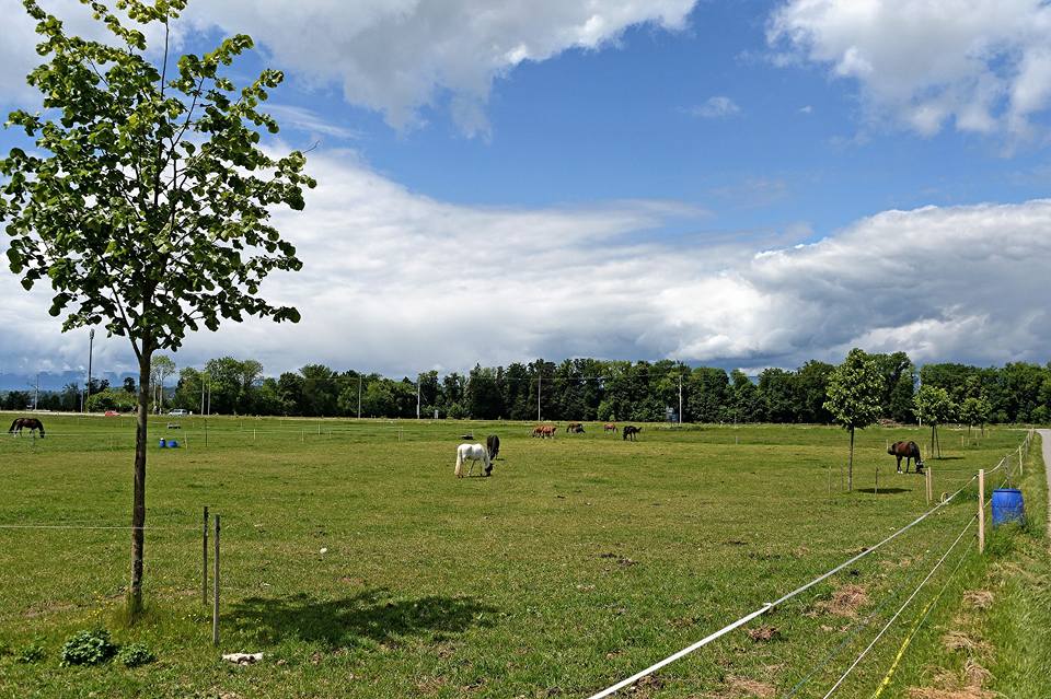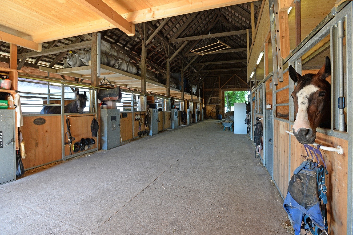 Für Trainingspferde stehen 2 Innenboxen von 16m2 mit täglichem Weidengang von 8-12 Stunden zur verfügung.